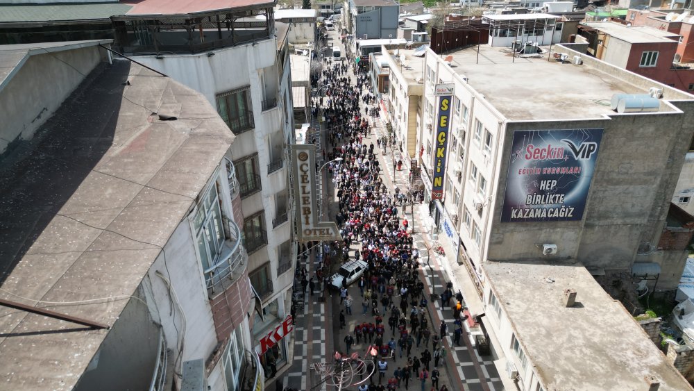 Siverek’te okul saldırısının ardından Memur-Sen öncülüğünde düzenlenen yürüyüşte kalabalık grup Kanlıkuyu Meydanı’ndan Ahmet Koyuncu MTAL’e doğru hareket etti.